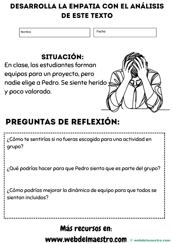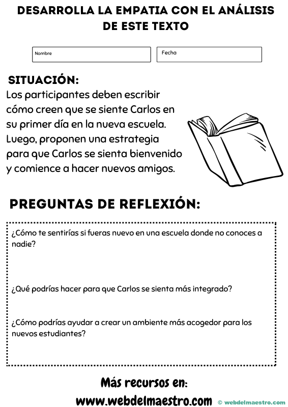 Las actividades mencionadas, que incluyen el uso de fichas, análisis de textos y el desarrollo del criterio a través de historias, ofrecen herramientas prácticas para que los estudiantes comprendan mejor las emociones de los demás y reflexionen sobre cómo actuar de manera empática en diferentes situaciones.