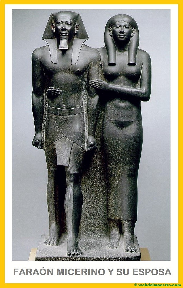 El faraón Micerino y su esposa (IV dinastía) – Museo de Bellas Artes, Boston.
