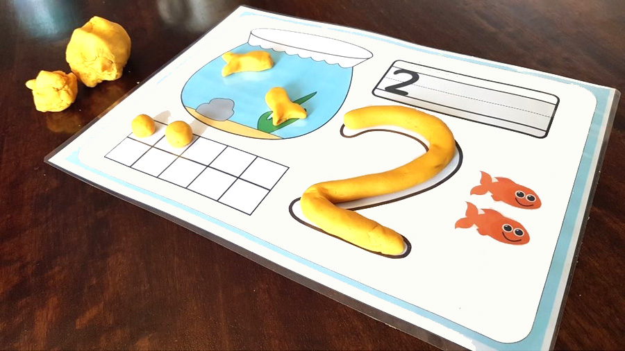 La primera serie comprende fichas del 1 al 9, para trabajar con plastilina y lápiz, como se muestra en la imagen siguiente.