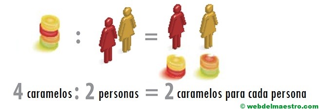“Si se reparten cuatro caramelos por igual entre dos personas, cada una de ellas obtendrá dos caramelos”.