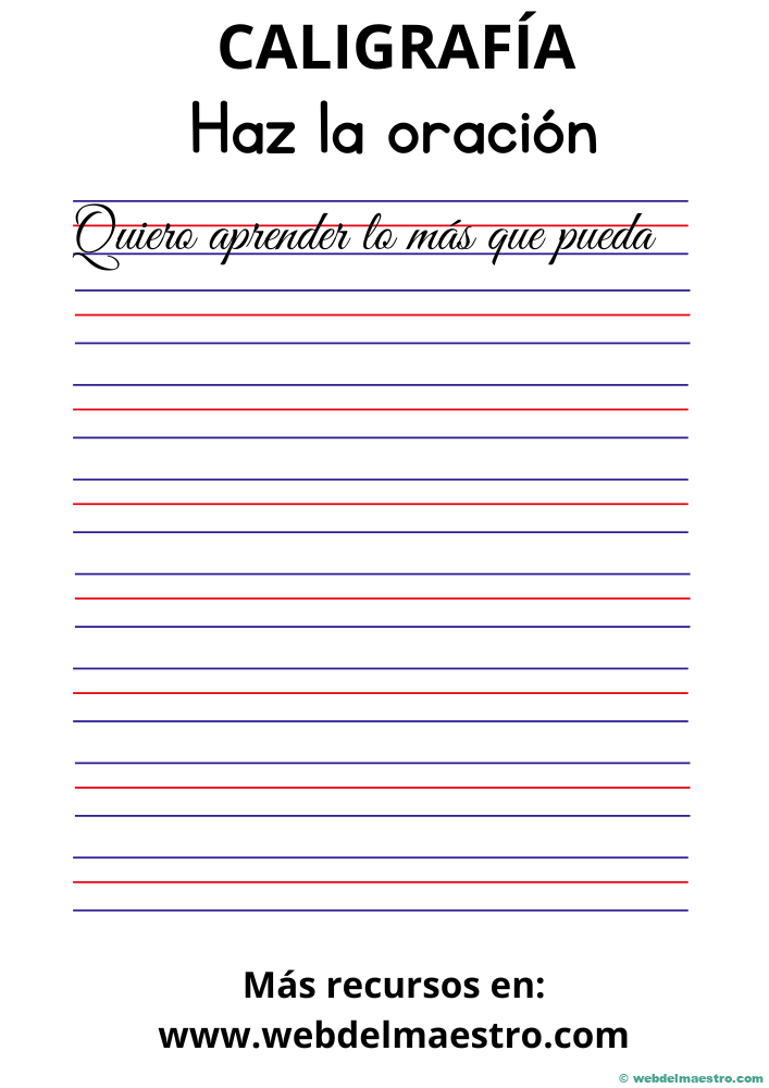 En las fichas más avanzadas, se incorporan frases cortas, lo que no solo mejora la caligrafía, sino que también añade un componente reflexivo o motivacional al ejercicio. Esta combinación de educación técnica y contenido interesante es ideal para mantener la atención del estudiante.