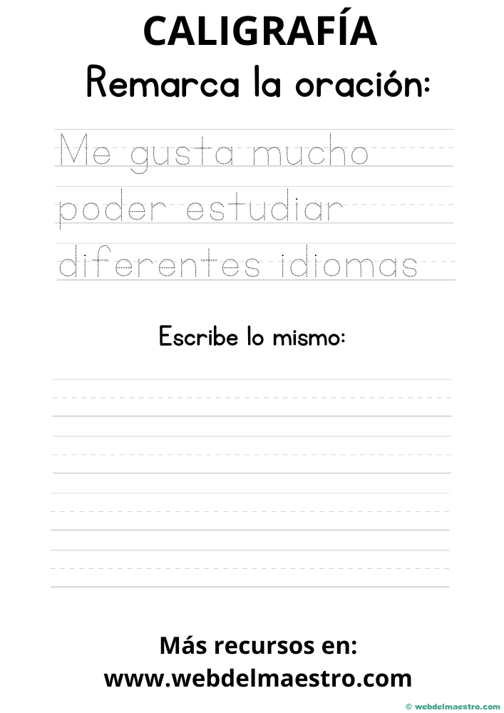 Las fichas de caligrafía para imprimir PDF son prácticas y accesibles, ya que pueden descargarse e imprimirse desde cualquier dispositivo. Estas fichas suelen incluir una serie de líneas y guías que ayudan a los estudiantes a mantener la uniformidad y la proporción en sus letras. Los ejercicios de trazado permiten que los niños y jóvenes practiquen tanto las letras individuales como palabras y frases, reforzando la fluidez de la escritura.