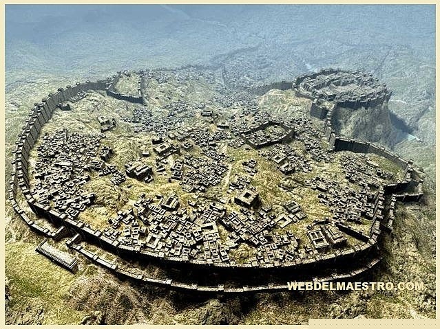 Las viviendas eran rectangulares o redondas. Las ciudades estaban gobernadas por un rey.POBLADO DE LA EDAD DE LOS METALES CON VIVIENDAS REDONDAS