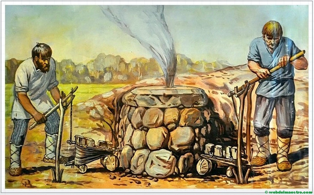 También lo extraían de minerales como la pirita de cobre, que lo contenía en una buena proporción. Más tarde lo fundirían en unos hornos especiales, donde se elevaba la temperatura por medio de unos sopletes.Una vez fundido el metal lo pasaban a los moldes, que daban la forma deseada al cobre.