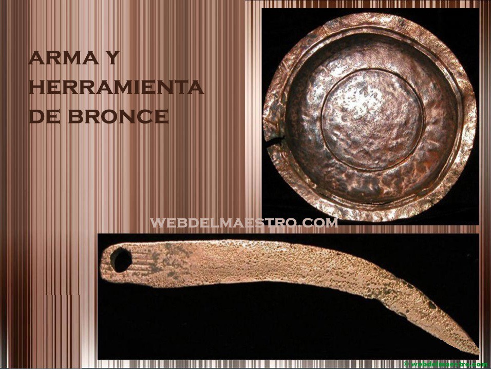 Más tarde se utilizó el bronce, que era una aleación de cobre y estaño. El bronce era duro y cortante y por ello se fabricaron con este metal gran variedad de útiles y armas.