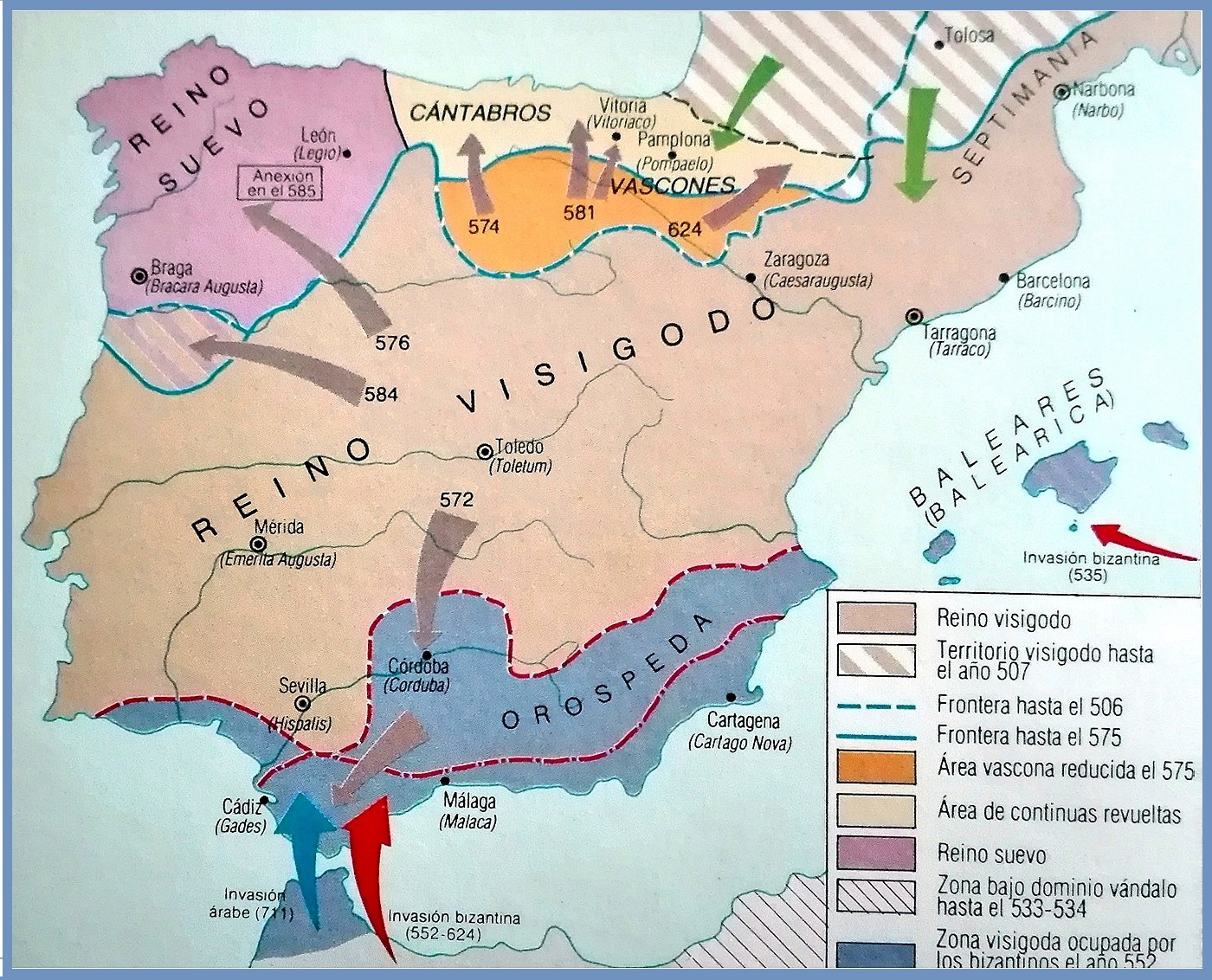 Después de la caída de Roma, los visigodos mantuvieron las ciudades de los romanos y establecieron la sede de su reino en Toledo ( año 507), ocupando casi toda la península ibérica y una parte del sur de Francia.