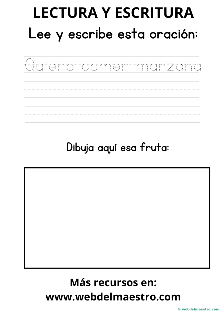Al igual que las fichas de escritura, las de lectura están disponibles para imprimir, lo que permite que los niños practiquen en cualquier momento, tanto en el aula como en casa. Esto asegura que el aprendizaje sea constante, algo esencial para el desarrollo de una buena base en lectura.