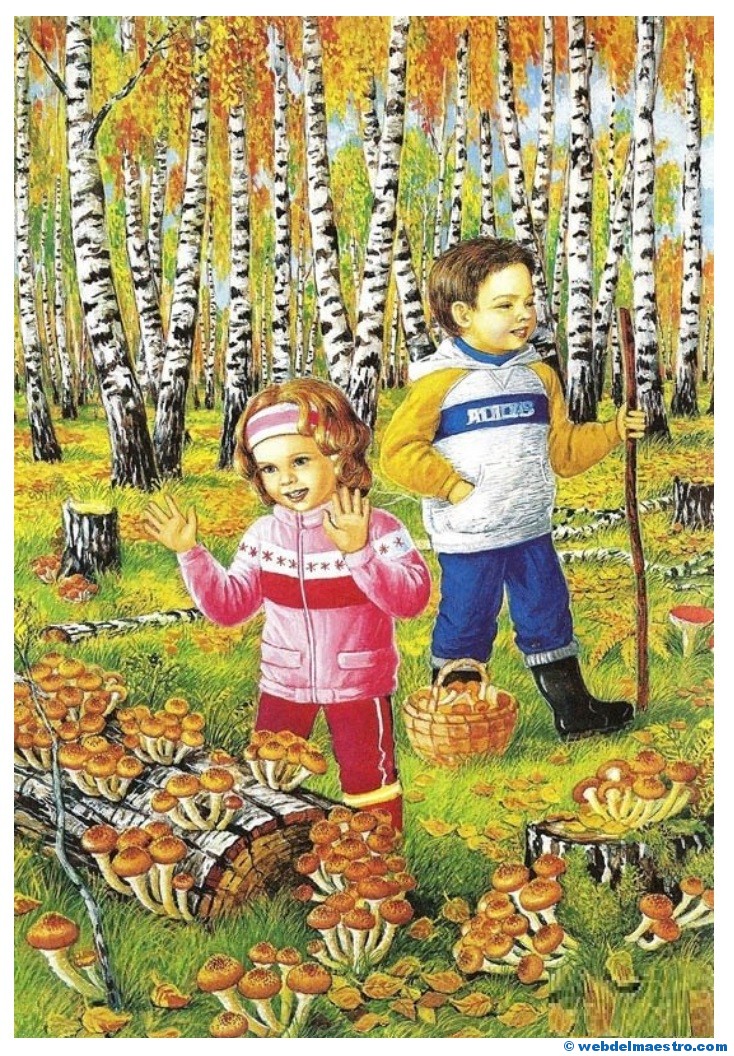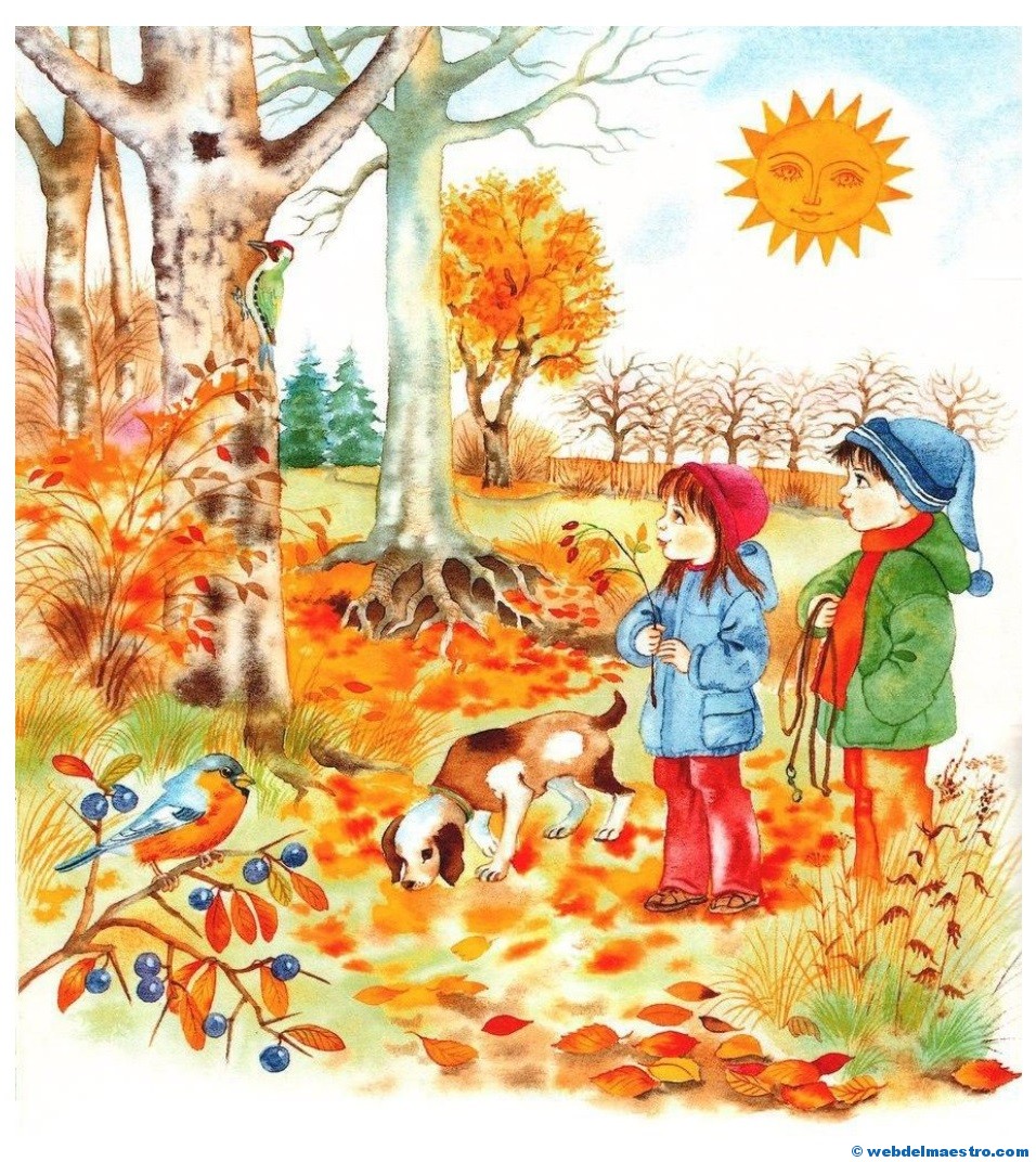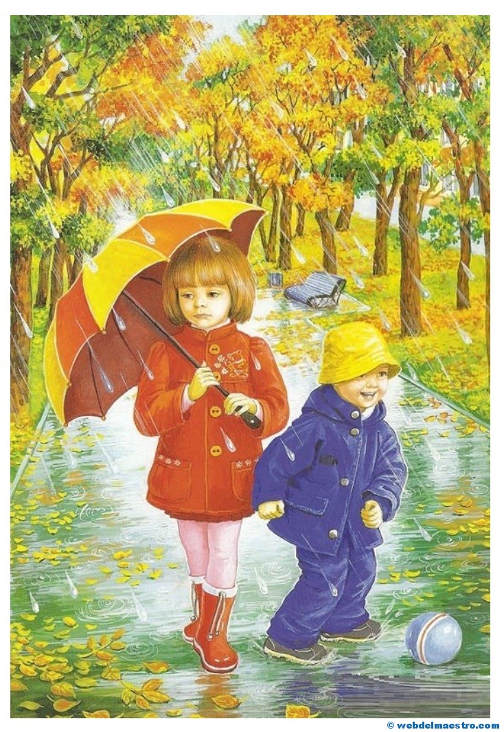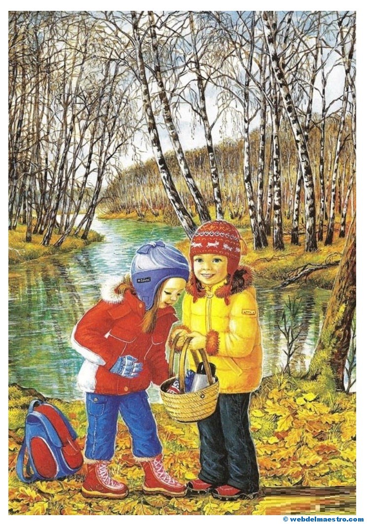 1º- Una relación de ocho imágenes referentes exclusivamente al otoño, donde aparecen como protagonistas los niños actuando ante distintos fenomenos que suceden en el otoño. Esta serie de imágenes son muy adecuadas para despertar la curiosidad y motivar a los niños y niñas ante la llegada de esta estación del año. Tienen el objetivo de fomentar diálogos en la clase. Se pueden mostrar a los niños/as para hacerles preguntas sobre lo que observan en ellas.