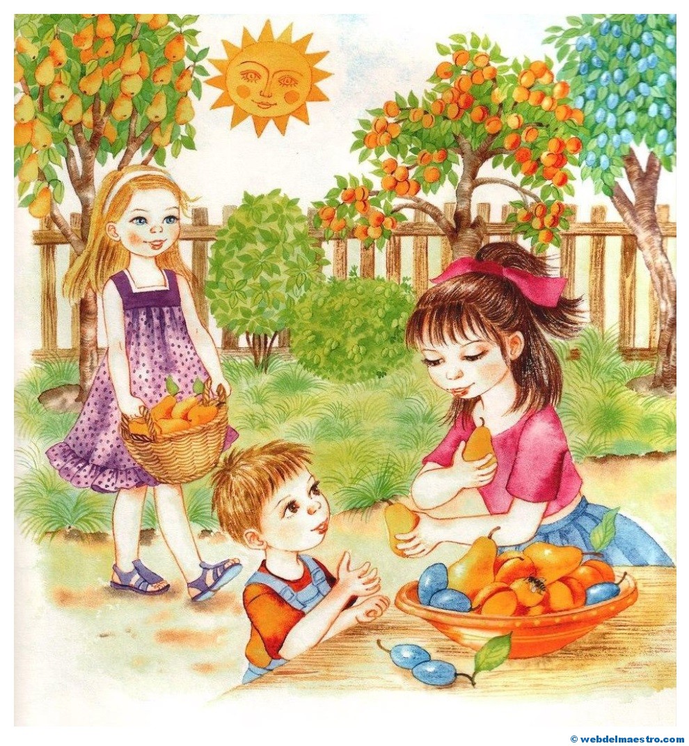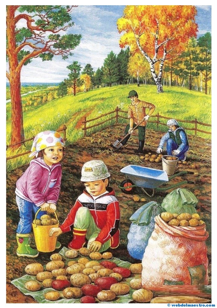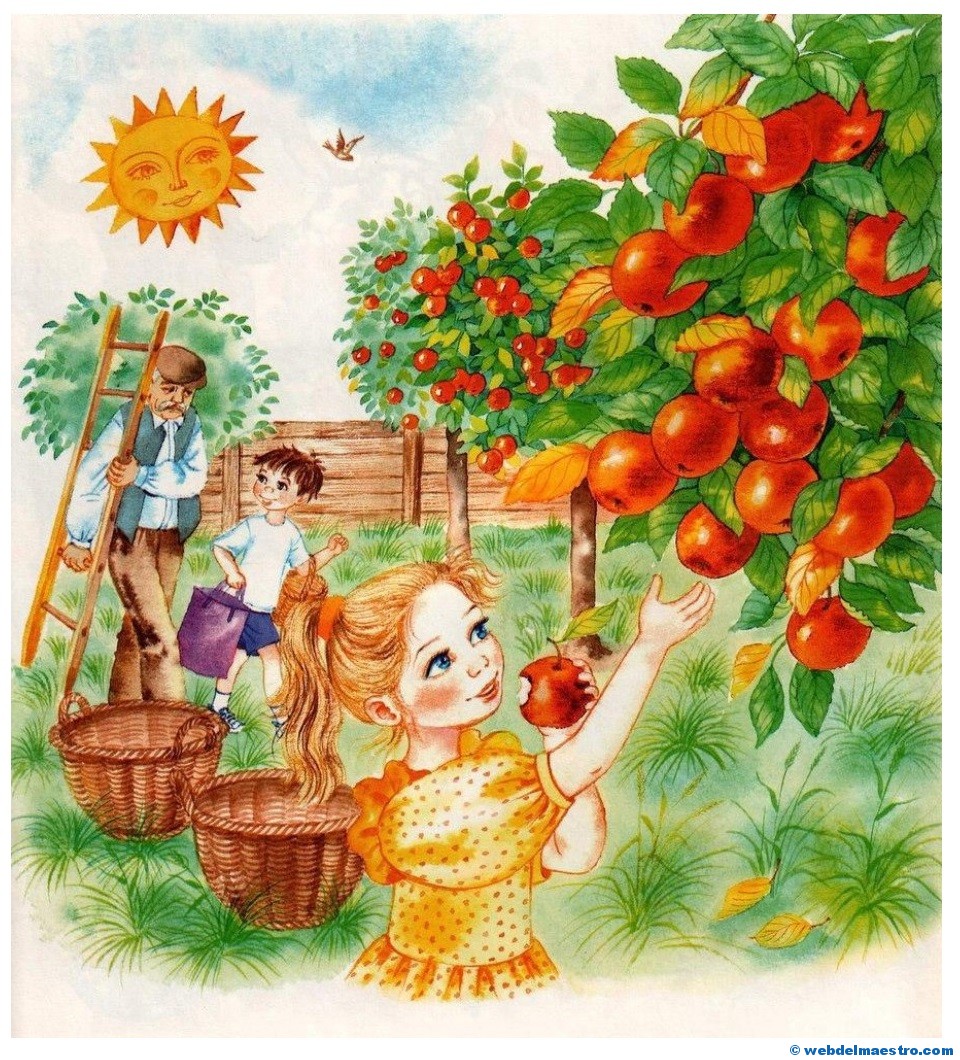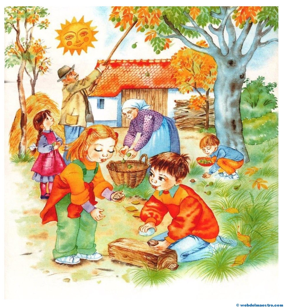 3º- Serie de imágenes educativas de las cuatro estaciones del año relacionadas con la naturaleza y los cultivos y recolección propios de cada estación. En ellas vuelven a aparecer los niños/as como elemento motivador. Estas imágenes, al reflejar varias de las cosechas de las cuatro estaciones, pueden servir para que los alumnos/as aprendan qué se recolecta en cada estación y para que identifiquen aquellos cultivos y árboles frutales propios de la primavera, del verano, del otoño y del invierno, y para que aprendan sus nombres.