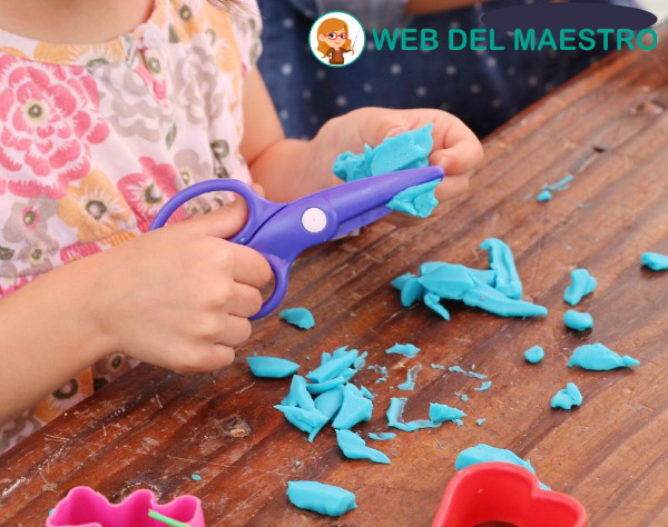 La plastilina, es uno de los mejores recursos para conseguir que los niños de Infantil desarrollen las habilidades motoras finas antes de emplear las tijeras. Esto se debe a que permite fortalecer los músculos de las palmas de las manos y, además, su costo es bastante accesible para trabajar en el aula.