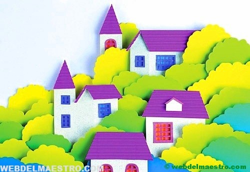 En estas plantillas no he realizado los elementos que intervienen en el paisaje, sino solo aquellos cuyo diseño pueden entrañar alguna dificultad para los niños/as. Las puertas, ventanas, chimeneas de las casas, así como los troncos de los árboles no están incluidos, pues considero fácil su dibujo.