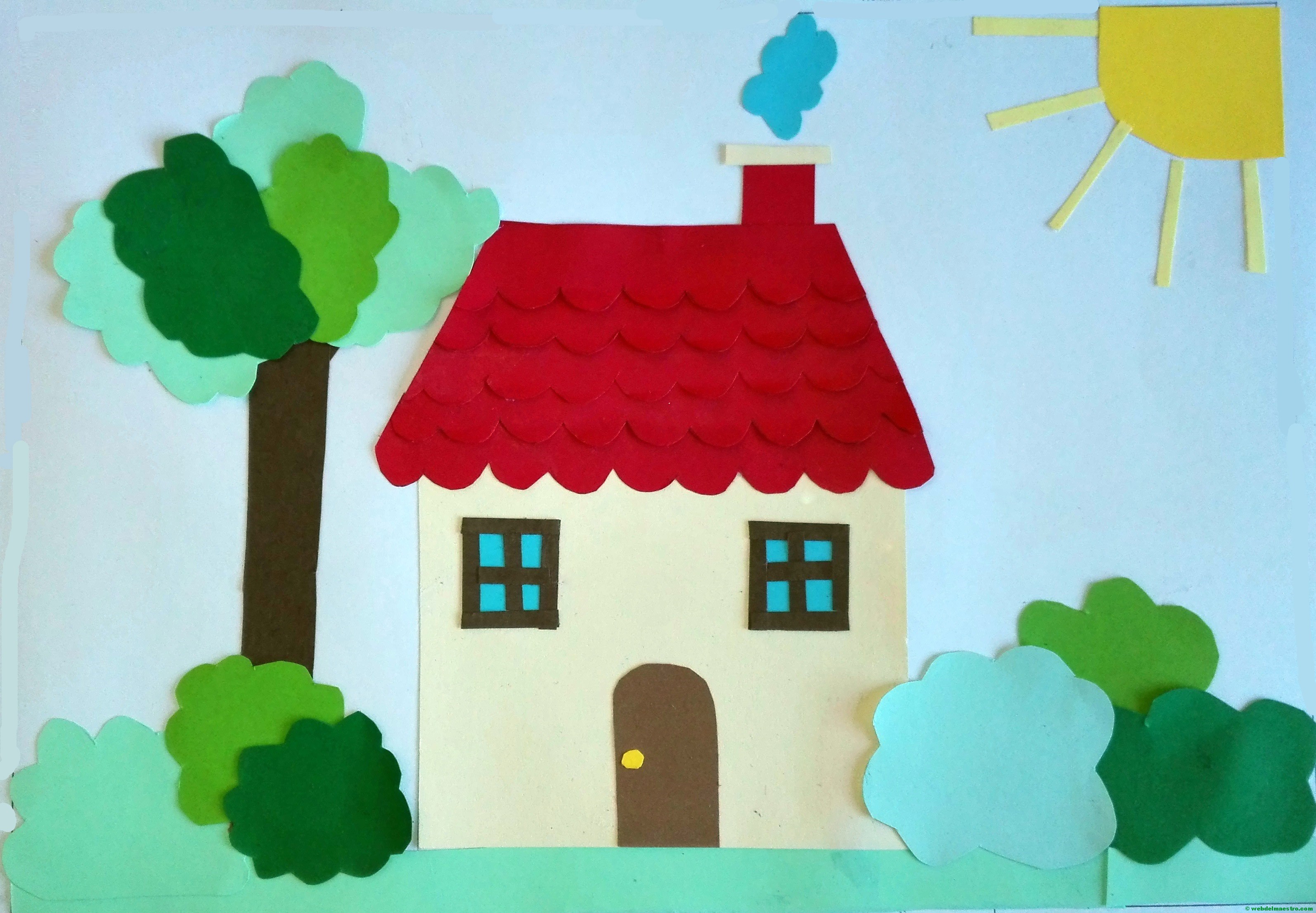 Continuamos el trabajo recortando la fachada de la casa y los demás componentes que intervienen en la composición de este paisaje.