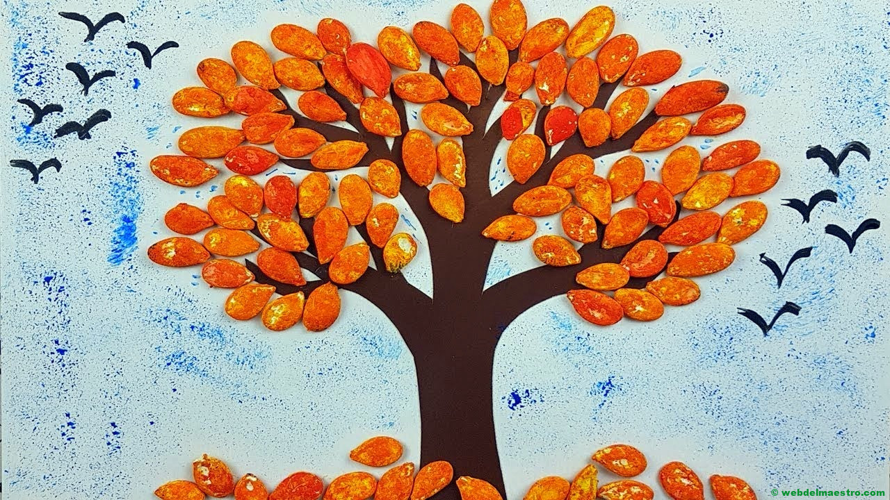 ÁRBOL REALIZADO CON PIPAS DE CALABAZA PINTADAS