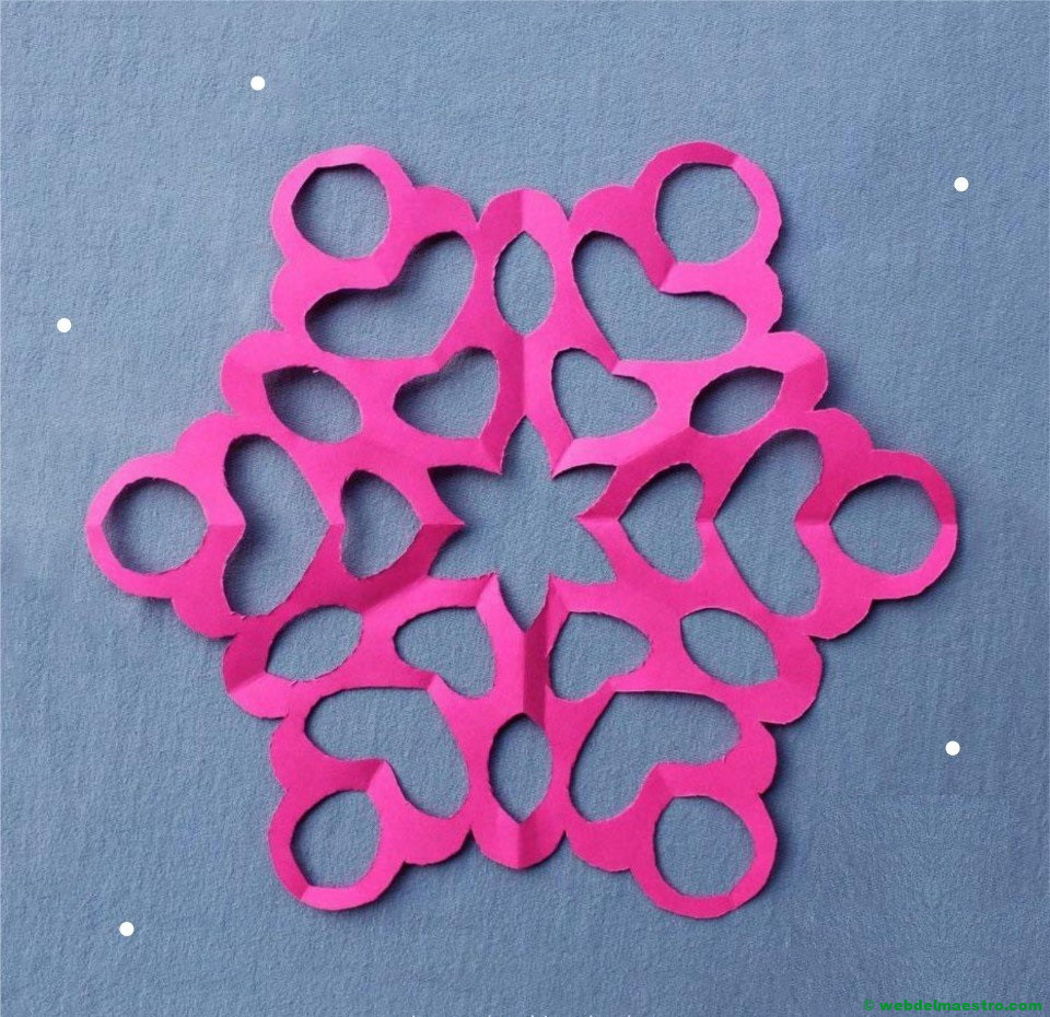 Este modelo prototipo nos indica el procedimiento a seguir con el doblado del papel para la creación de los distintos copos que os dejo a continuación.