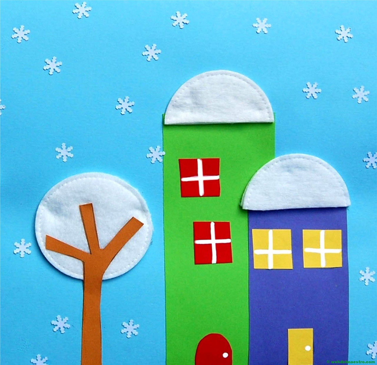 Copos de nieve, árboles de Navidad, paisajes navideños, muñecos de nieve son algunas de estas manualidades para niños que os dejo a continuación.