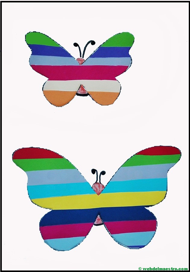 Colocar y pegar el recorte obtenido sobre las tiras de cartulina que habíamos pegado previamente.
