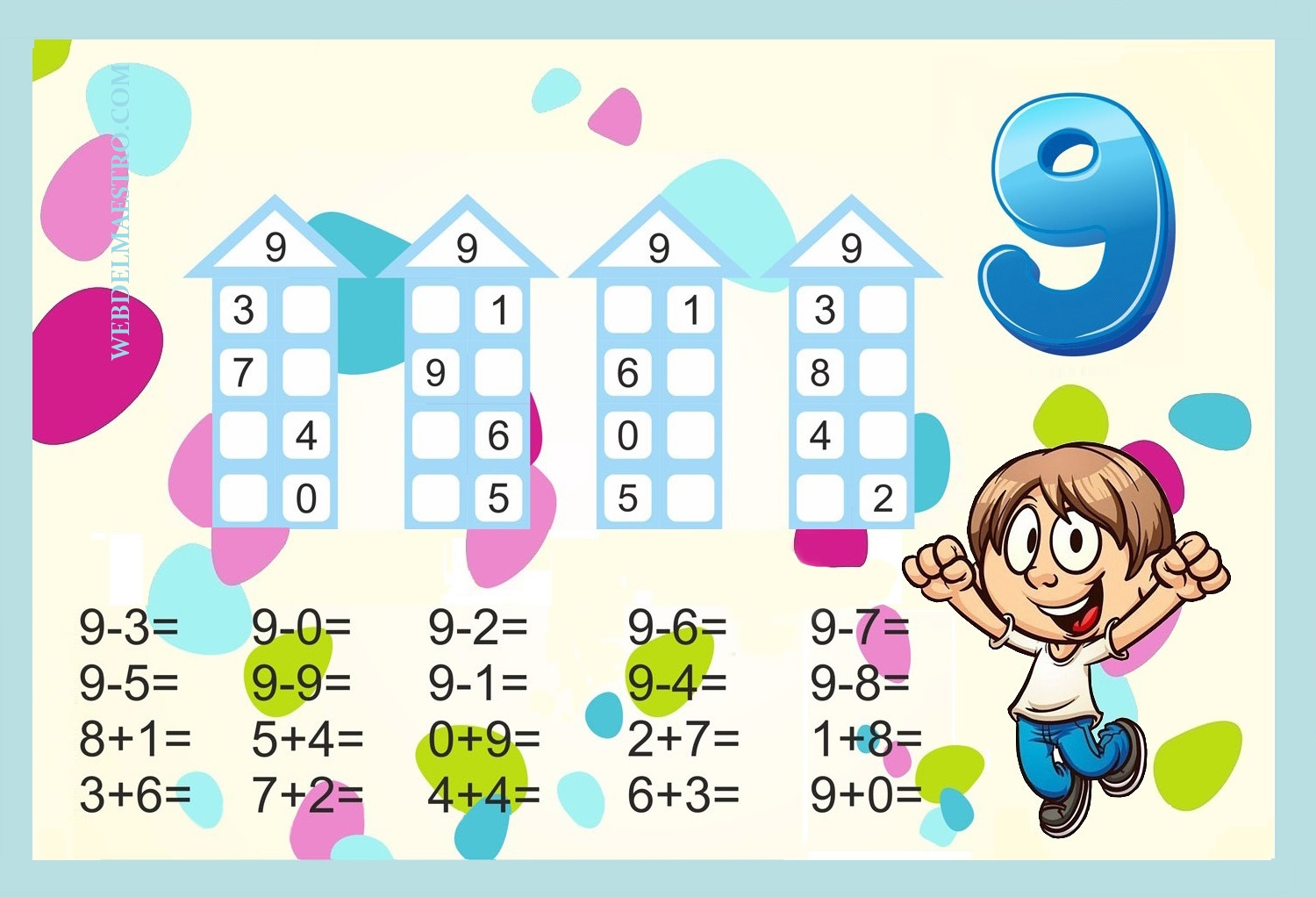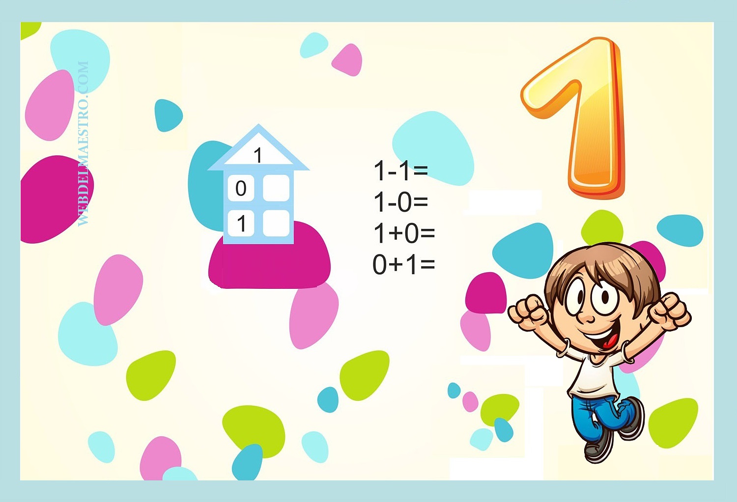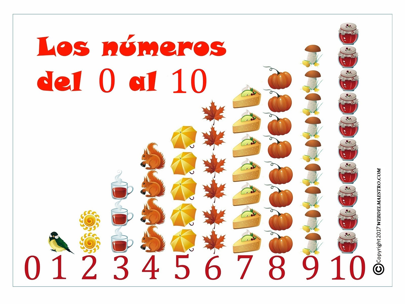 Os dejo este modelo de cartel sobre los números del 0 al 9 con el fondo en varios colores (blanco, azul, amarillo y rosa), para que podáis elegir.