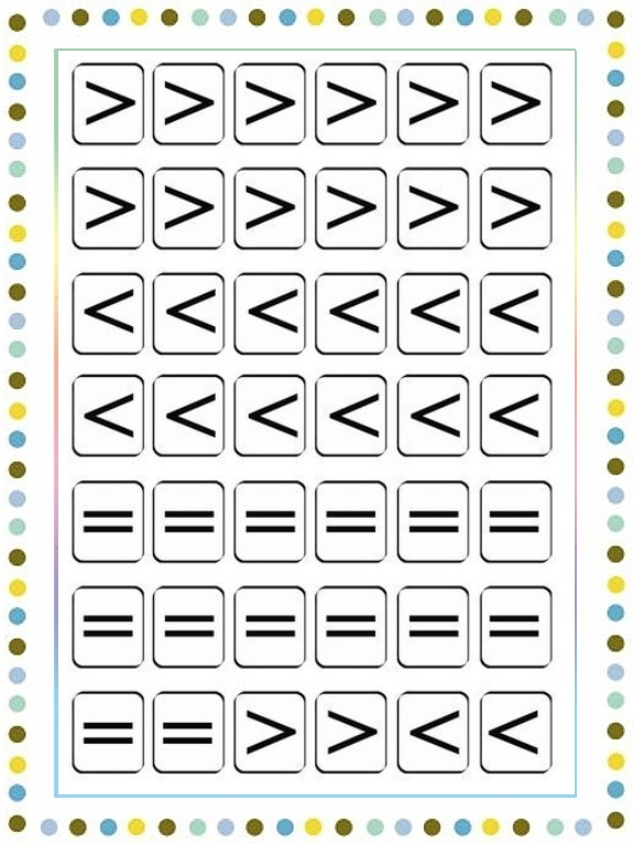 SIGNOS MAYOR QUE, MENOR QUE E IGUAL QUE, PARA RECORTAR Y PEGAR