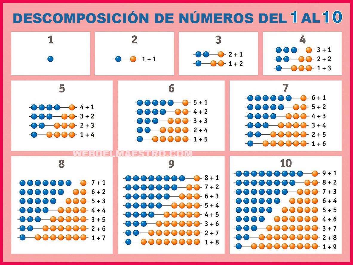 IMÁGENES DE DESCOMPOSICIÓN DE NÚMEROS PARA IMPRIMIR con fondo en blanco o en color.