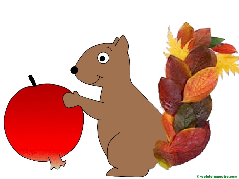 ARDILLA CON BELLOTA Y HOJAS DE OTOÑO