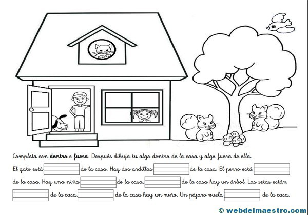 – Realizar fichas donde el alumno tenga que tachar, rodear o colorear cosas que están dentro o fuera de algún espacio concreto.