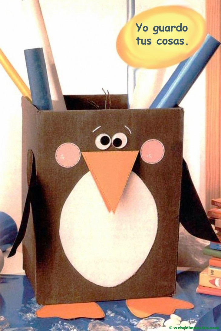 Tanto si se utiliza como papelera o como caja de ordenación, este simpático pingüino guardará los enseres que le encarguemos.