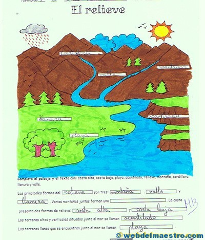 Ficha sobre el relieve para niños del tercer nivel de primaria.