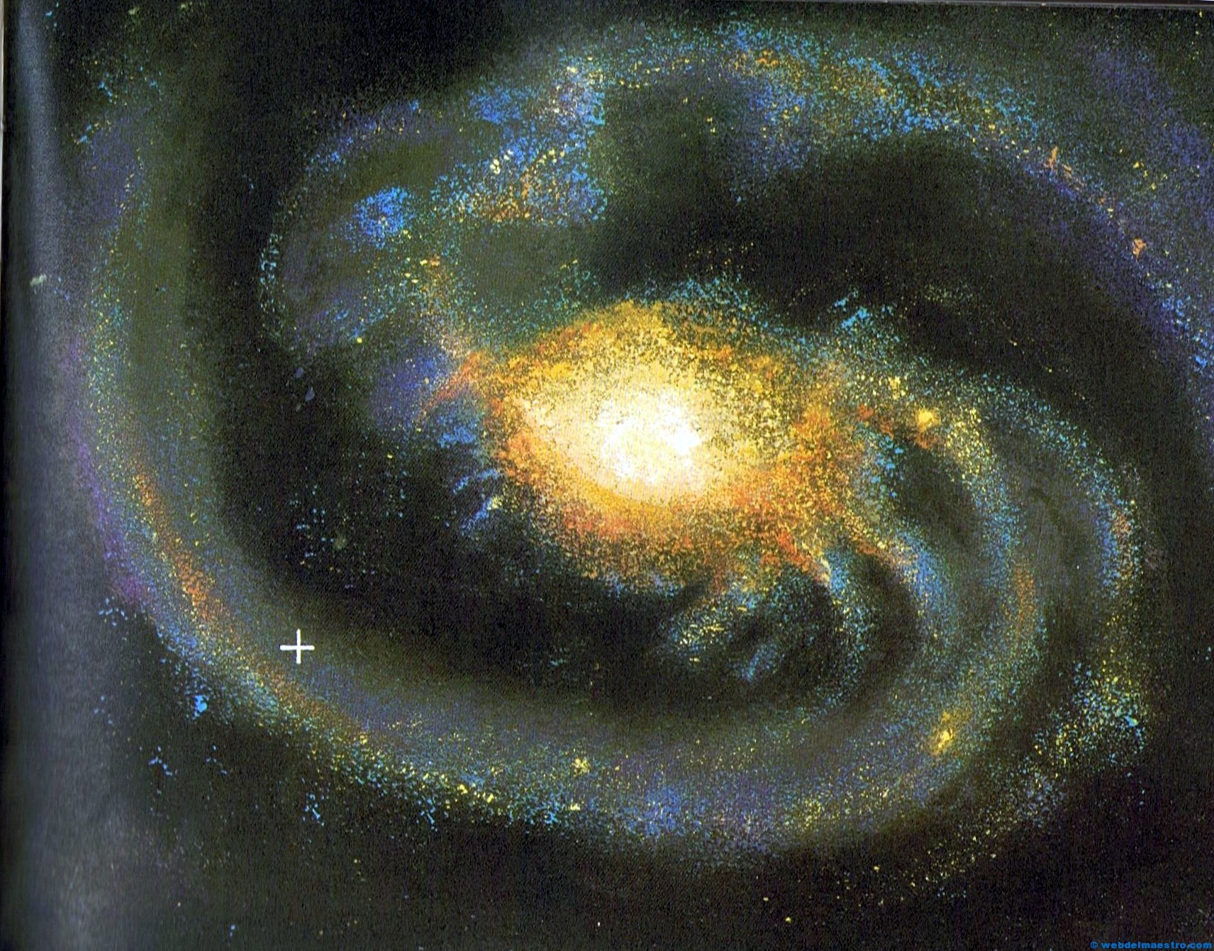 Nuestra galaxia es la Vía Láctea, porque el Sistema Solar forma parte de ella. La Vía Láctea tiene forma espiral y está compuesta por más de 100.000 millones de estrellas, entre las que se encuentra nuestro Sol. El Sistema Solar se encuentra situado en uno de los brazos externos de nuestra galaxia, tal como se señala en el dibujo siguiente (marcado con una +).Haz clic sobre la imagen para ampliar.