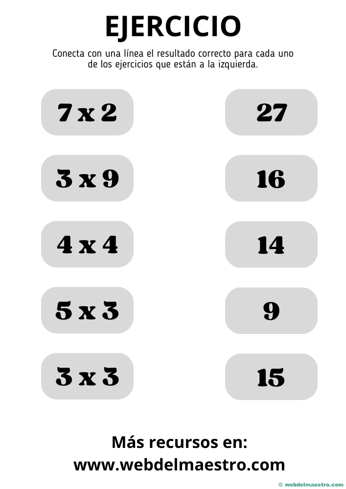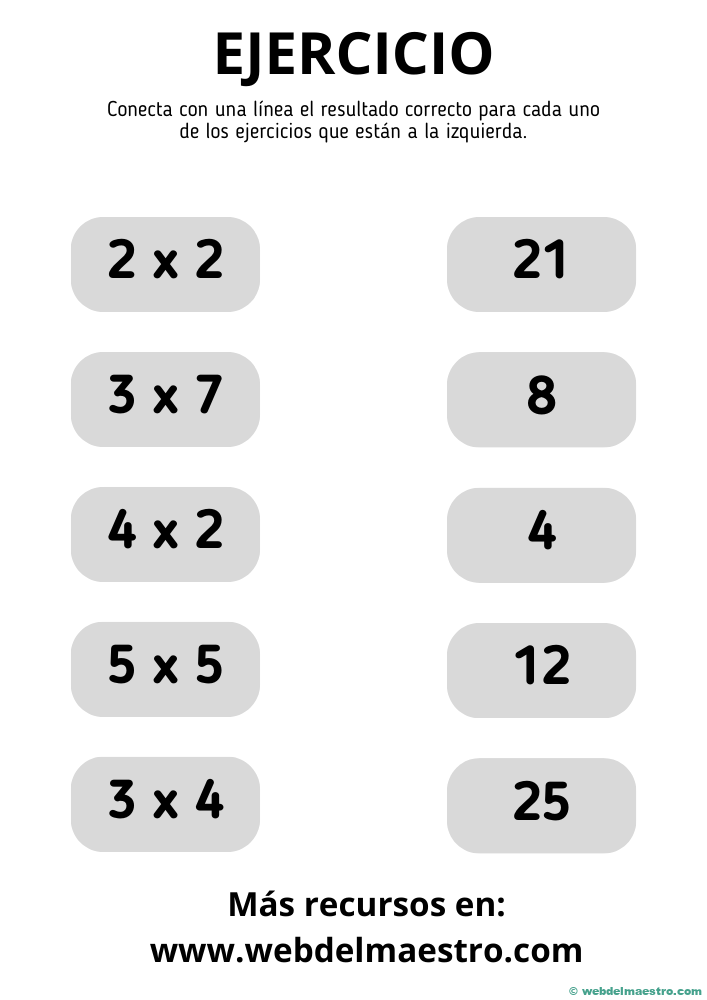 En tercer grado, los niños comienzan a aprender las tablas de multiplicar del 1 al 10. Los ejercicios de multiplicación deben ser variados y dinámicos para captar su atención y ayudarlos a memorizar las tablas. Las fichas imprimibles para este nivel incluyen actividades como completar tablas, resolver problemas sencillos y juegos que desafían a los niños a encontrar la respuesta correcta rápidamente.