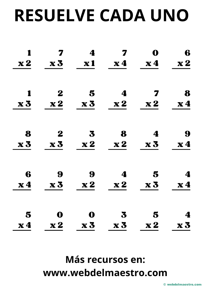 Las fichas imprimibles para este nivel pueden presentar multiplicaciones largas. Estas actividades no solo refuerzan el conocimiento de las tablas, sino que también preparan a los estudiantes para enfrentar problemas más avanzados.