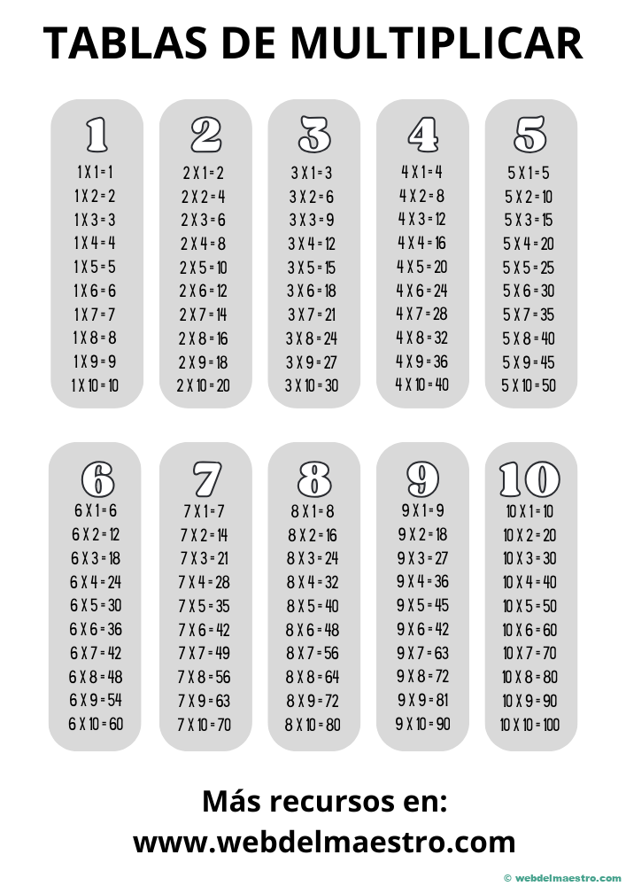 Las fichas de multiplicación para imprimir son una herramienta muy útil para practicar de manera divertida y efectiva. A continuación, veremos cómo estos recursos pueden beneficiar a los niños en su proceso de aprendizaje, también conoceremos recursos donde están plasmadas, así como algunas fichas específicas para tercer y cuarto grado, aunque valido para otros grados también. ¡Conoce más aquí de las tablas de multiplicar fichas para imprimir!