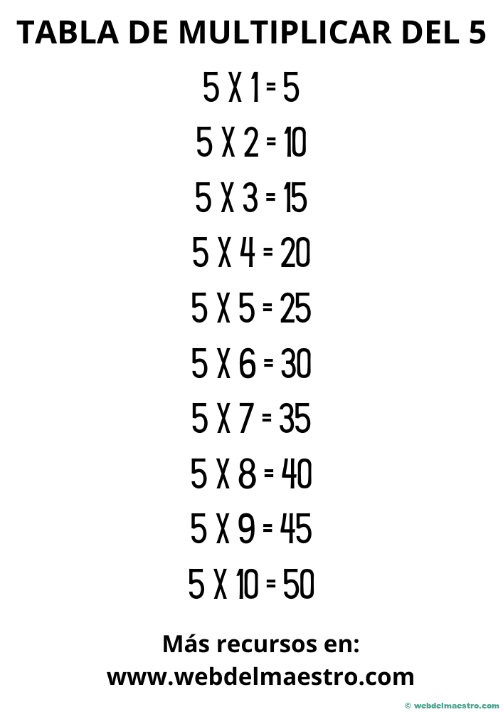Descarga fichas | Tabla del 5 |